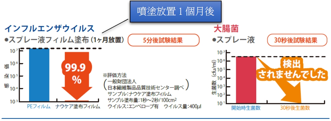 不含氯,可在短時間內達到除菌・除病毒之效果,使用1次可維持病毒除去效果1個月。
